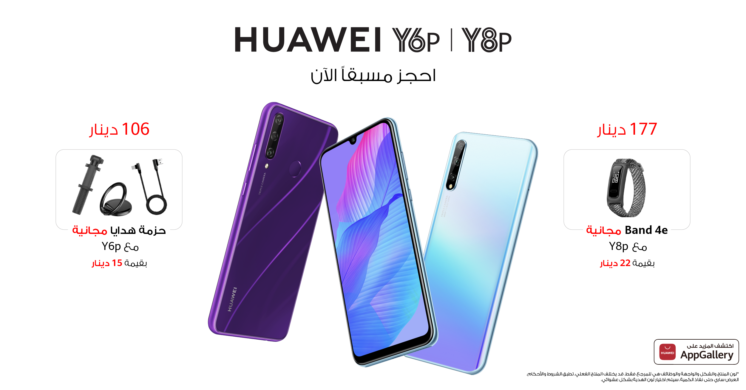 وابتداءً من اليوم الإثنين 8 حزيران 2020، يتوفر هاتف Huawei Y8p للحجز المسبق في الأسواق الأردنية بسعر 177 دينارًا، بالإضافة إلى هدية مجانية عبارة عن Band 4e بقيمة 22 دينارًا، في حين يتوفر هاتف Huawei Y6p أيضًأ للحجز المسبق بسعر 106 دنانير، بالإضافة إلى حزمة من الهدايا المجانية بقيمة 15 دينارًا.