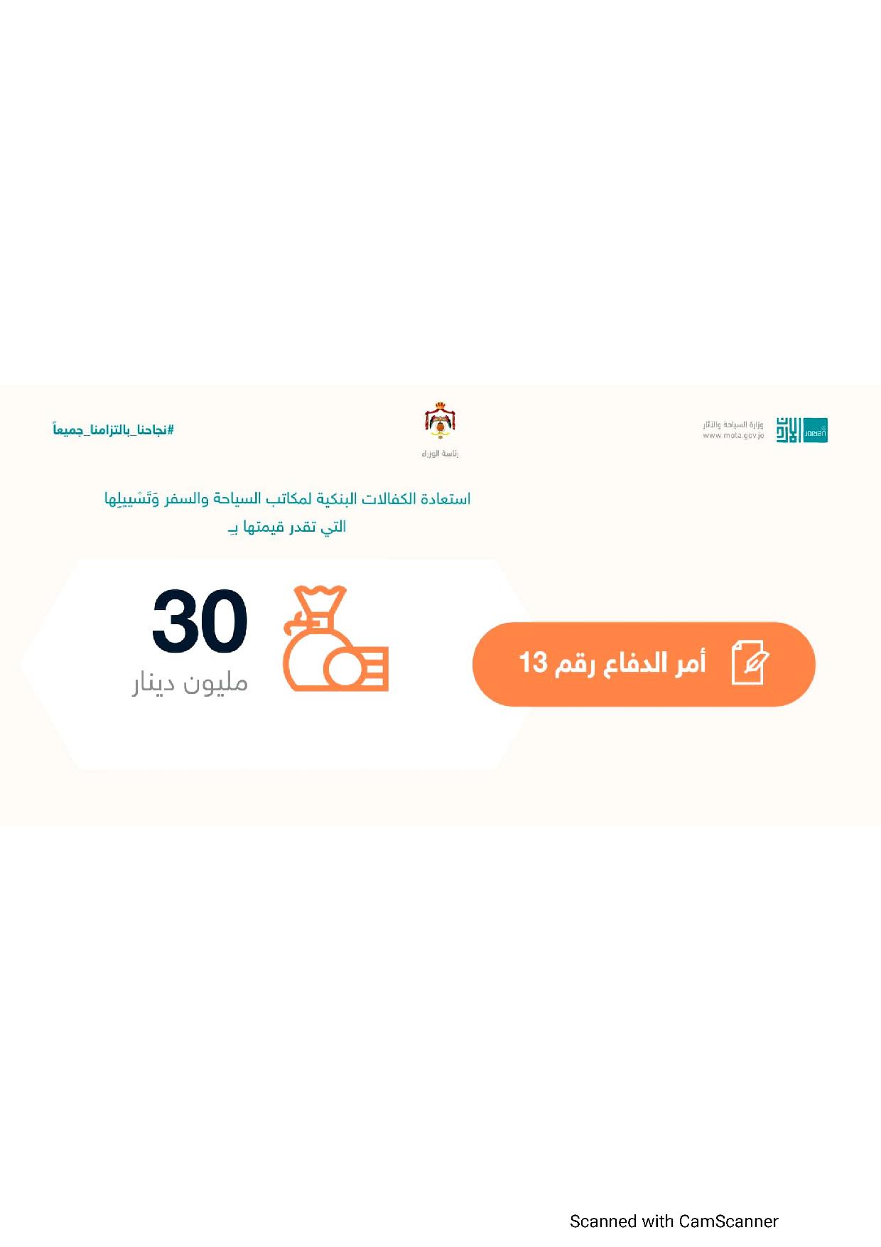 وأعلنت شويكة إصدار أمر الدفاع رقم 13 والذي يجيز لمكاتب السياحة والسفر/ بجميع انواعها، إن رَغبت، استعادة كفالاتها البنكية وتَسييلها بما يمكن هذه المكاتب من الحصول على السيولة الضرورية خلال هذه الفترة. علماً أن قيمة هذ الكفالات تقدر بـِـ 30 مليون دينار.