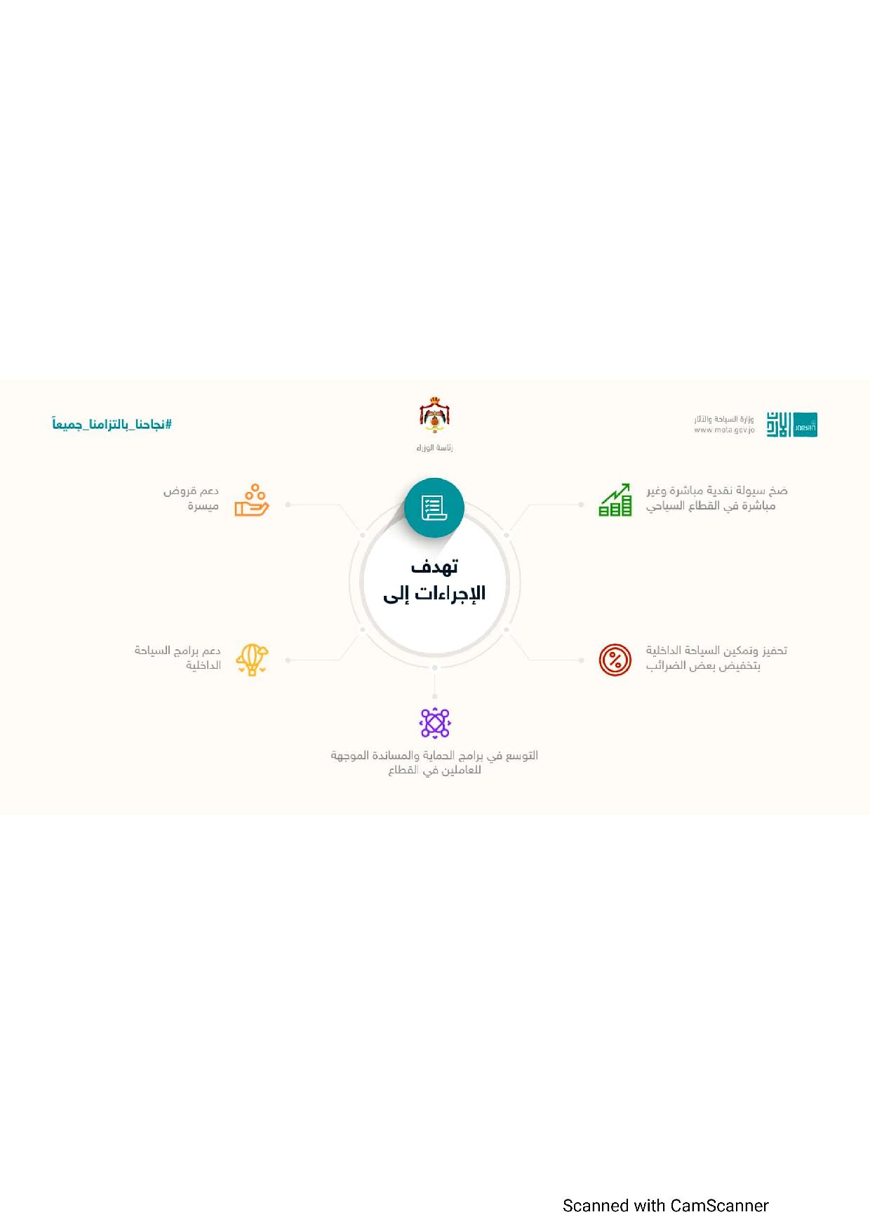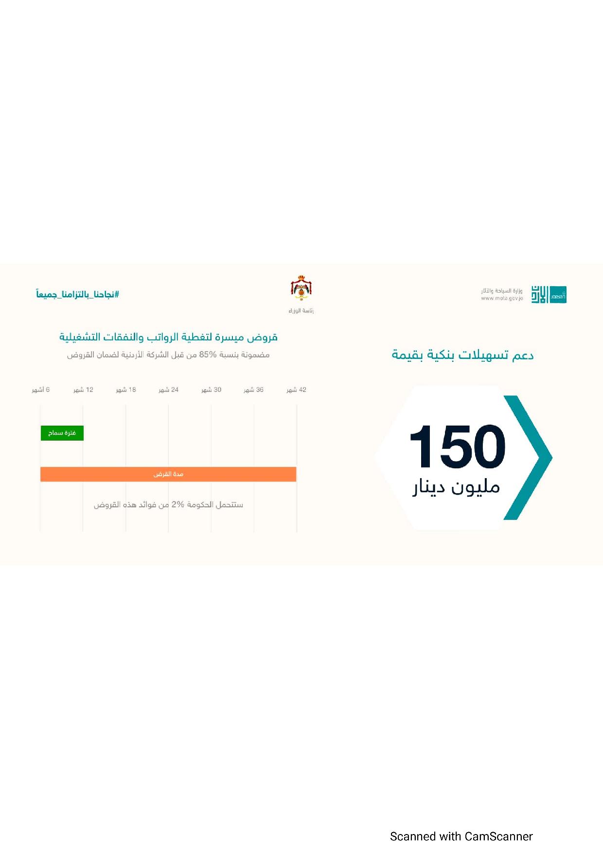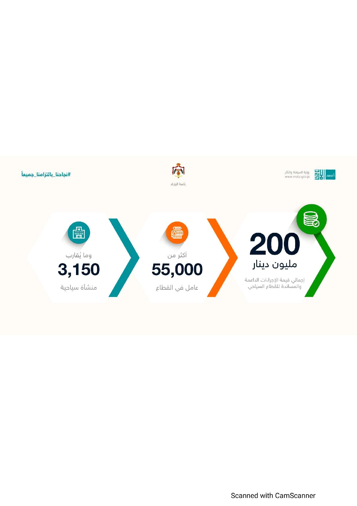 كما سيتم توفير مظلة إضافية لحماية العاملين في القطاع السياحي/ ودعم استقرارهم الوظيفي/ عبر تمكين المنشآت السياحية العاملة من الوفاء بالتزاماتها/ تجاه العاملين فيها والحفاظ على العاملين لديها من الأردنيين.