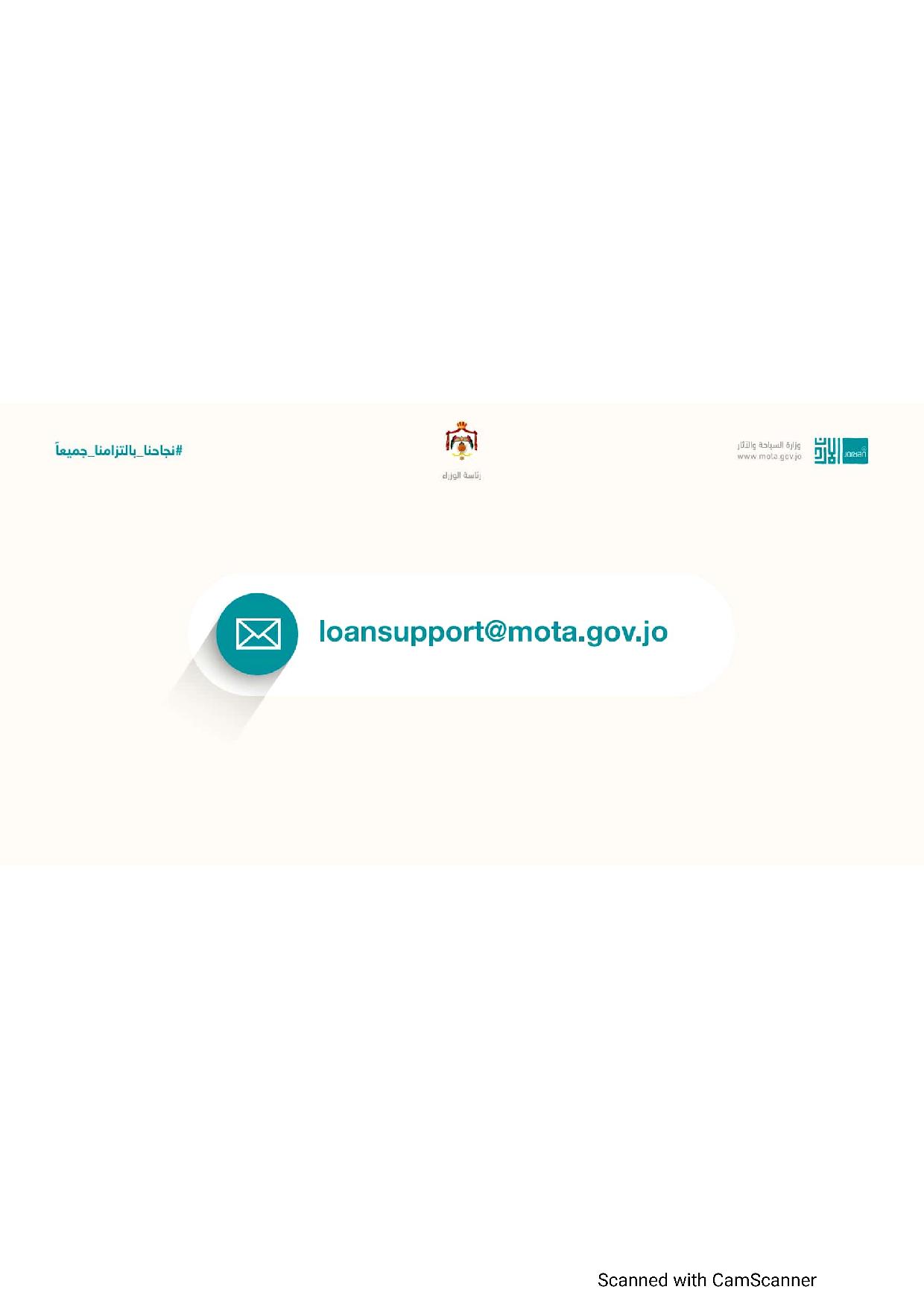 وتخصص وزارة السياحة والآثار لهذه الغاية البريد الإلكتروني Loansupport@mota.gov.jo للإجابة على الاستفسارات ومتابعة أي حالة تواجه صعوبات في التقدم بطلبات التمويل من خلال التنسيق المباشر مع البنك المركزي والشركة الأردنية لضمان القروض.