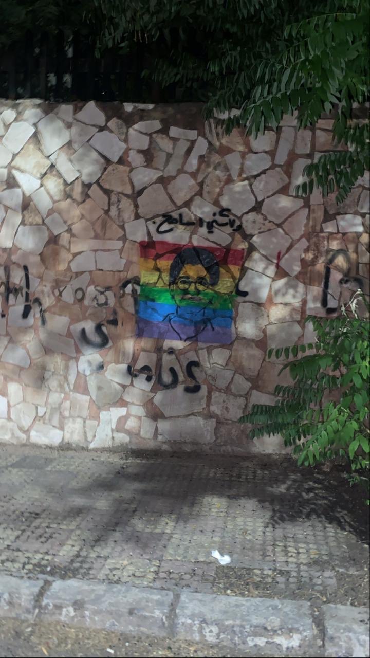 وارفق رسم قوس قزح الذي انتشر على عدة جدران في عمان برسم للناشطة المصرية سارة حجازي والتي اقدمت على الانتحار في كندا.