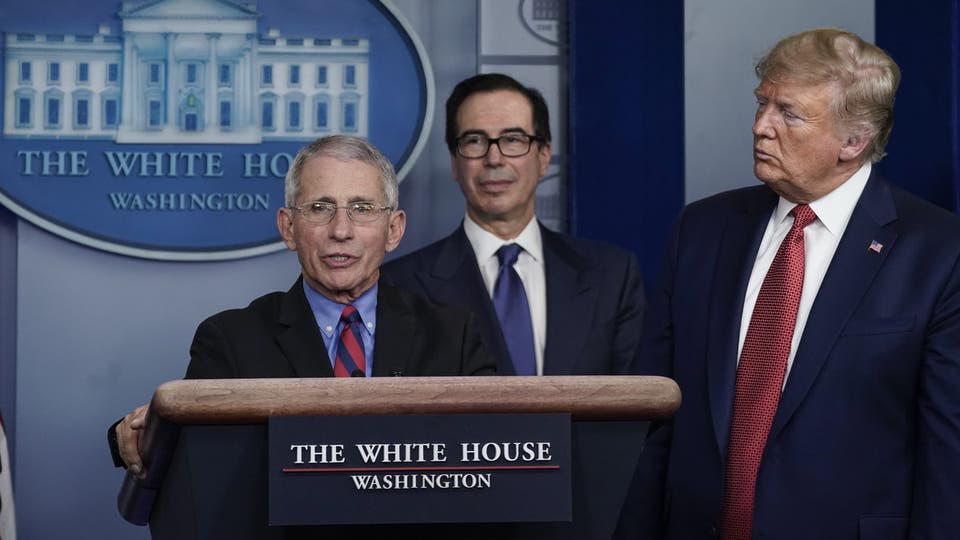 فقد أكدت المتحدثة باسم الرئاسة كايلي ماكيناني أمس أيضا أنّ ترامب لا يزال "بالتأكيد" يقدّر رأي خبير الأمراض المُعدية. وأضافت أنّ "الدكتور فاوتشي واحد من كثر يقّدمون النصائح في خليّة الأزمة".