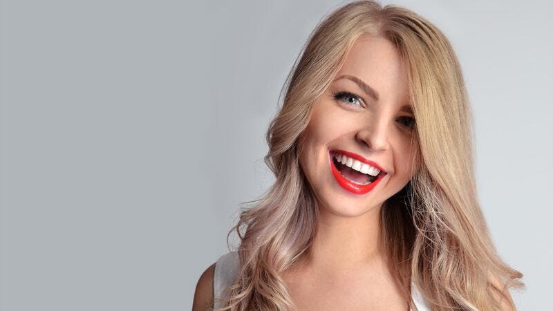 يوصي خبراء الأسنان باستعمال هذه الخدعة السريعة لتزييف بياض الأسنان: مثل الملابس ذات اللون الأحمر؛ بالمقارنة الظلال الباردة تجعل الأسنان تومض. نحب استعمال احمر الشفاه، المصممة لاظهار الاسنان أكثر بياضاً والتي تحتوي على زيت النعنع المنعش.