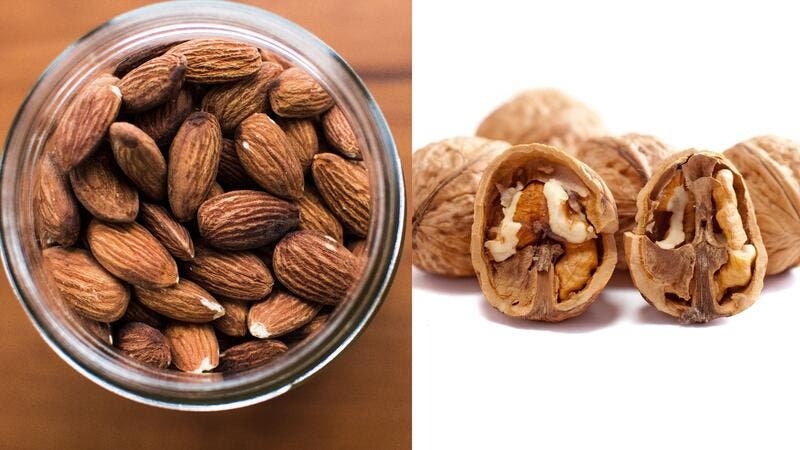تظهر الدراسات أن الأشخاص الذين يتناولون المكسرات يوميًا أقل عرضة للإصابة بأمراض القلب بنسبة 40 في المائة. بالحديث عن كل من اللوز والجوز ، يخفض الكولسترول الضار ، ويسيطر على مستوى السكر في الدم ويقلل الالتهاب. اللوز مليء بمضادات الأكسدة وفيتامين E والمغنيسيوم ، بينما الجوز غني بالأوميغا 3 المضاد للالتهابات.