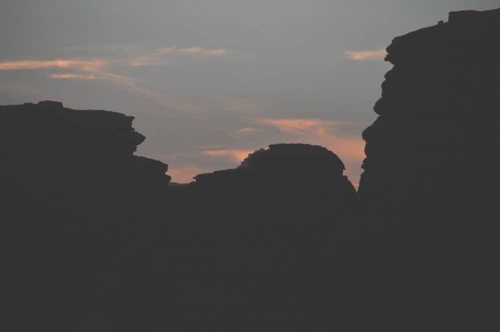 وعند طور أبو مكفورة كان مخيم المبيت الذاتي بعد أن تفقدنا من احتمالية وجود عقارب أو أي حشرات أو زواحف قد تعكر صفو الليل، اخترنا فيه فج مغلق بزاوية توافق التيارات الهوائية الليلية وفي مدخله شُجيرات زادت جمال المكان جمال، جهزنا المخيم لنلحق بغروب الشمس وحواره كأنها قصائد ضوئية تختال ما بين الصخور بصمت وخيال ملهم، حتى غطست باحمرارها ما بين شقيقات لونها من الجبال وخجل ما بين الشقوق.