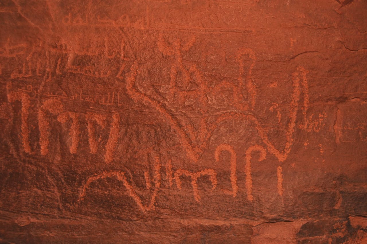 عدنا لمخيمنا وبعد العشاء أخذنا جولتنا الليلية تحت ضوء القمر والذي استمد الوادي " وادي القمر" اسمه منه، فنوره كافي بأن يغنينا عن استخدام الإضاءة، وما زاد المكان روعة مشاهدة كثافة نجوم لا تراها في سماء المدينة، وإجمالي المنطقة التي نحن نتوسطها تسمى " حسمى" وتمتد من رأس النقب لجبال الشراه في الغرب إلى منطقة تبوك جنوباً في المملكة العربية السعودية، وكانت منطقة عبور رئيسية لقوافل التجارة والترحال عبر التاريخ ما بين اليمن و البحرين وطريق الحرير و بلاد الشام، وأيضا طريق الحج لمكة المكرمة والمدينة المنورة وبيت المقدس، وما تركوه لنا من أثر على صفاء الصخور من نقوش تمثل حقب مختلفة ولسان أهل حضارات من لحيانية، ثمودية، نبطية، اسلامية وغيرهم، كتابات وأشعار وعقود بيع وشراء، أسماء وحروف آيات وحكم ومواعظ، أشكال حيوانات وطيور ونباتات و رسوم ذات دلالات عزة وفخر، ومن بعضها استمدت العديد من القبائل وسم ركوبها من جِمال وخيل وأنعام، بعلامات متعارفة بين العرب والنسب.