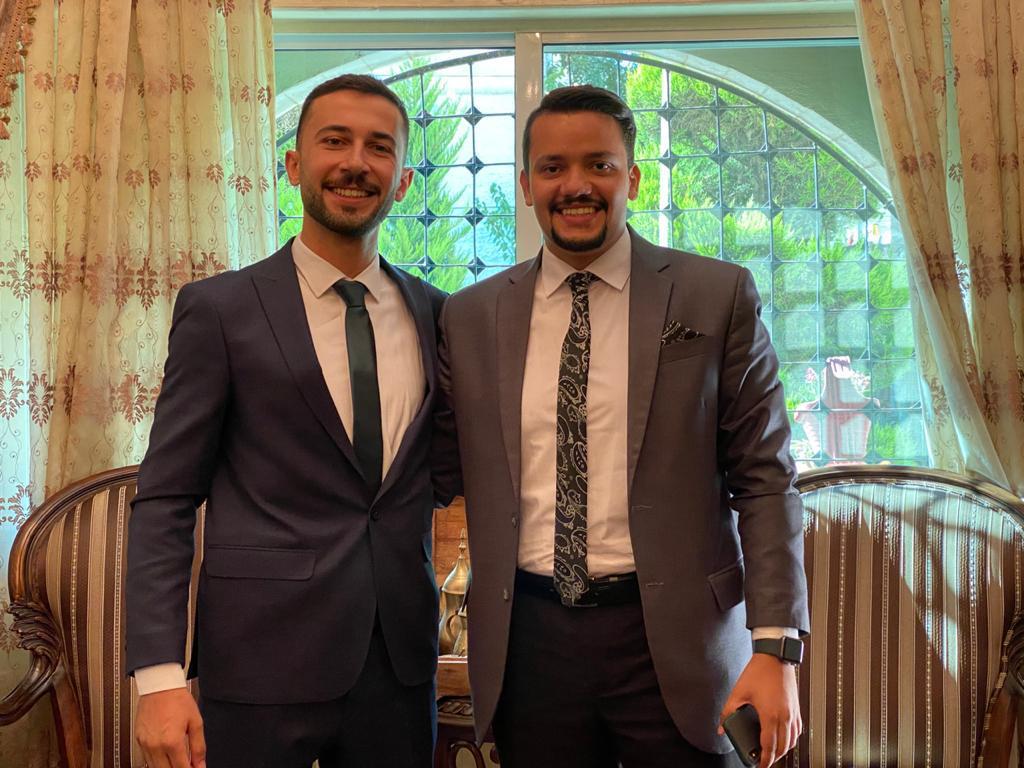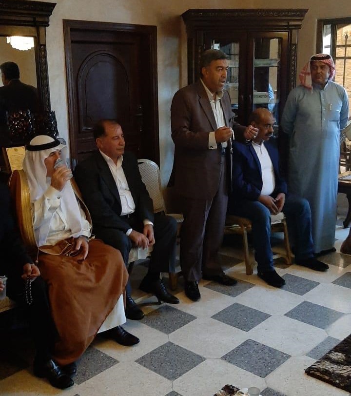 عمون - توجهت جاهة كريمة مساء الجمعة 14/8/2020 برئاسة معالي الدكتور محمد طالب عبيدات إلى منزل تيسير باشا الزيود في سحاب لطلب يد الدكتورة الصيدلانية بلقيس تيسير الزيود، للملازم شرف قرباع؛ نجل الباشا الدكتور محمد قرباع. |