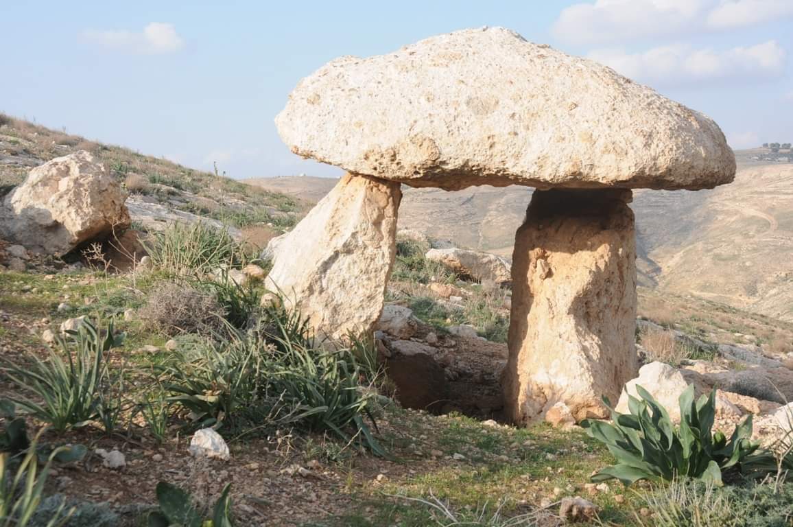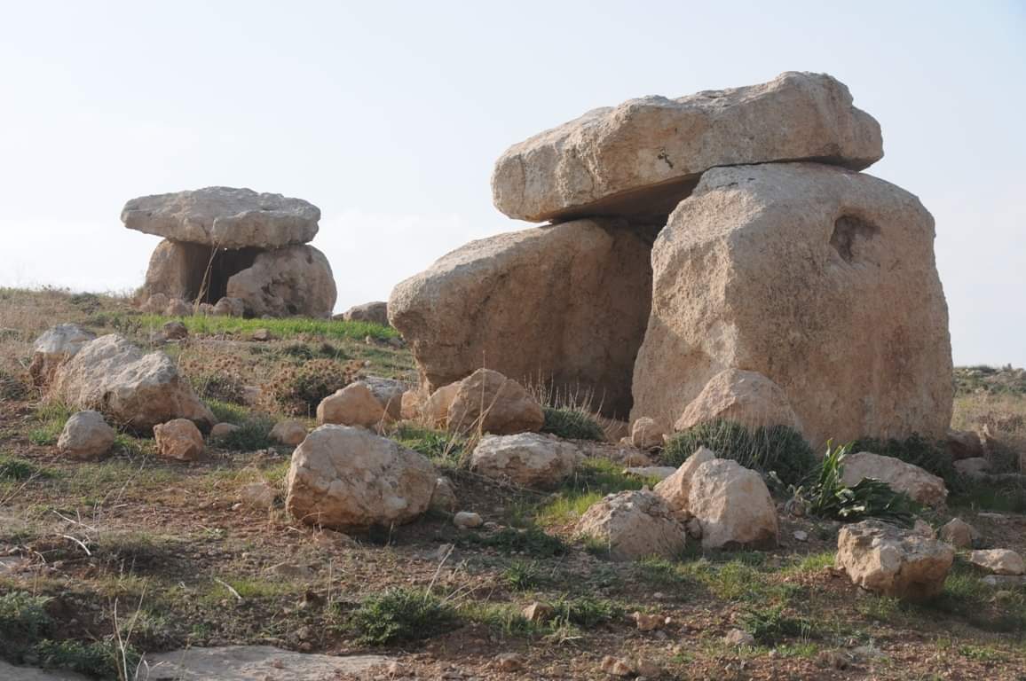 سلكنا الدرب الهابط من شرق التلّ باتجاه المساكن القديمة التي هجرها سكانها، وحسب ما علمنا وظهر لنا أنها بُنيت في مطلع القرن الماضي من حجارة الموقع، ومنها اتجهنا لوادٍ جديد موسمي الجريان، قاصدين حوض الدولمنز في الجهة المقابلة منه، حيث ذكر المستشرق ترسترام في كتاب أرض مؤاب ضمن رحلاته الاستكشافيه لشرقي البحر الميت عام 1872 واصفاً مافيه من معالم وحياة بداوة، لتبدأ قبور الدولمنز بالظهورالمبنية بصفائح صخرية من نفس الجبل، الأمر الذي يُصعب مشاهدتها من بعيد بكتل ضخمة شديدة الصلابة بمعدل مترين طول وعرض وارتفاع، وبوزن يصل الى ثلاثة أطنان للحجر الواحد، تعتبر قبور الدولمنز أول بناء مسقوف للإنسان ضمن عمل هندسيّ جماعي، مخطط ومنظم بدقة، وتعود للعصر البرونزي المتآخر، أي قبل خمسة آلاف عام، تفقدنا الحوض وما فيه من تكوينات جرون مختلفة الأحجام حيث تبين أن الحوض يضم ما يقارب أربعين مدفن والذي حافظ على حاله بكل ما واجه من ظروف طبيعية وزلازل ليبقى صامداً بخلود عبر العصور والزمان.