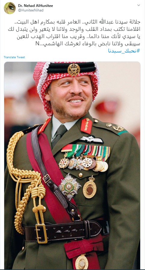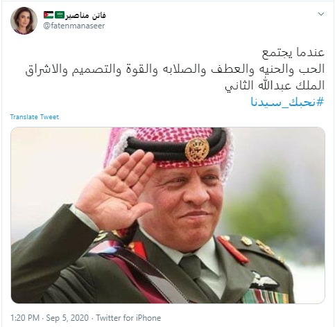 تولين النوارسة نشرت صورة لجلالة الملك علقت عليها : في نظرته هيبه وفي كلمته درس ..
