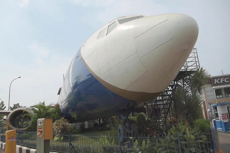 ويعتبر "مطعم الطائرة" من الأماكن التي يرتادها الإندونيسيون من المدن المجاورة، ويقع في ساحة مركز تجاري في مدينة بيكاسي، شرق العاصمة جاكرتا، مع المحافظة على شكل الطائرة الأصلي، وتغيير المقاعد فقط.