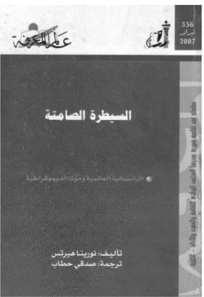 "لقد انتصرت الرأسمالية لكن غنائمها لم تصل إلى الجميع " هكذا استهلت الكاتبة نورينا هيرتز خبيرة اقتصاد العولمة كتابها (السيطرة الصامتة ) الذي صدر في بريطانيا عام 2002 و نقله الى العربية صدقي حطاب.