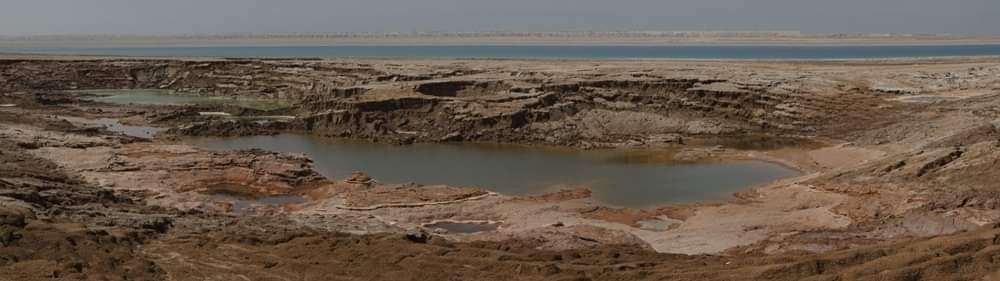 ومع كل خطوة كنا نسمع صوت خشخشة أقدامنا بهذا الرصف العجيب الى أن وصلنا لمنطقة تداخلت فيها الأصوات وأصبحت خطواتنا كأنها تقرع طبول الأرض، فهذا هو الفراغ الخطر الذي حذر منه الدكتور الجيلوجي نجيب ابو كركي بالحفر الانهدامية الناجمة عن ذوبان كتل الملح تحت طبقات التراب بفعل مياه الامطار، مخلفة فجوات يمكنها أن تخسف وتهوي في أي لحظة وهو ما حدث في أكثر من موقع، فبعضها إنهار وابتلع مساكنٌ ومزارع ومنشئات. غادرنا المكان لنتوجه إلى منطقة أخرى أكثر أماناً وصلابة مروراً بين بحيرات، تجمع فيها كثيرٌ من القار والطين الأسود الذي كان الحصول عليه جل اهتمام الفراعنة من جيرانهم الأنباط لتحنيط ملوكهم وعلية القوم من كهنتهم وسر دوام خلود الجمال إلى يومنا هذا وهم من سموه ببحر الزفت والملح.