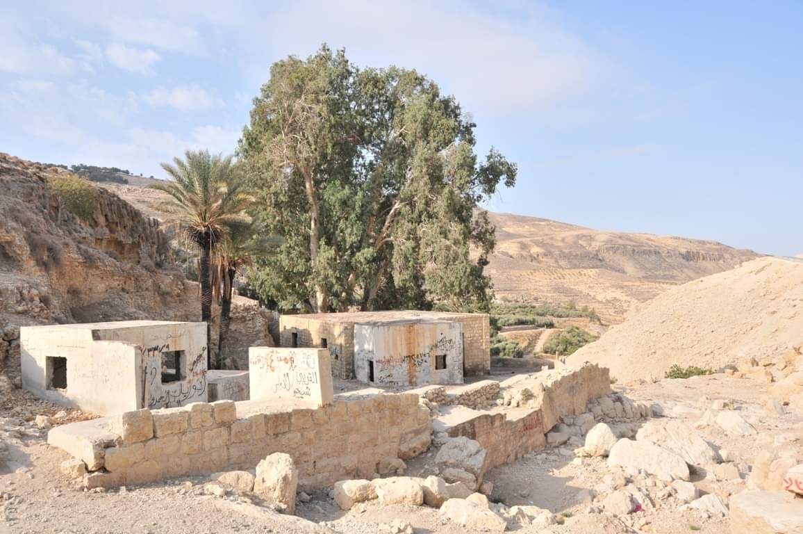كانت أشجار الكينا دالة النظر للعين المباركة؛ فهناك حدثت معجزة ضرب العصا لسقاية الأسباط مع أنه في وادي موسى قرب البتراء عين أخرى تحمل نفس الاسم وليست ببعيدة عن قبر أخيه هارون -عليهم السلام- وقد كانت العين استراحتنا الأولى بقلب جرفها الصخري الواسع بين السرخسيات وما تكلس من هوابط نرقب طيور السمان والقطا. وبعد هذه الخلوة اتجهنا نحو طريق "اسبوس جيركو" العتيق الواصل بين حسبان وأريحا، الذي ما زالت حجارة رصيفة ماثلة ليومنا هذا، بمتوسط عرض ثمانية أمتار منثورة في عدد من المواقع، وهي كافية لمسربين ذهاب واياب دون مزاحمة، ويدل ذلك على مدى كثافة المرتحلين على هذا الطريق الدولي المهجور، والذي يمكن أن تعاد إليه الحياة إن تم ترويج سياحة المسير على الدروب الدينية، وقد تخلله عدد من أعمدة الميل الإرشادية للمسافة وأشهرها الميل السادس وقصة الحاجة الإسبانية إيجيريا وزيارتها في القرن الرابع الميلادي لتصدر بلادها طابع بريدي؛ تخليداً لذكرى الزيارة المباركة إلى جانب دابتها قرب العامود، فهي قد وصفت رحلتها في مذكراتها في أدب الرحلات المسيحية وكيف أن أنوثتها لم تثنيها عن مبتغاها الإلهي رغم صعوبة رحلة الثلاثة أعوام ووعورة المكان.