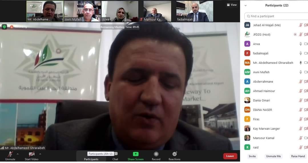 وقدم الغرايبة عرضا ترويجيا عن المنطقة الحرة الجديدة الواقعة في مطار الملكة علياء الدولي التي افتتحها جلالة الملك عبدالله الثاني مؤخرا، اضافة لمنطقتي البحر الميت التنموية ومنطقة الصوان التنموية – تلفريك عجلون، مشيرا الى أهم الفرص الاستثمارية الواعدة والمزايا الجاذبة للاستثمار المتوفرة في المناطق الحرة والمناطق التنموية، مؤكداً أن الهدف من إنشاء المنطقة الحرة المطار، جاء لتكون ميناءً بريّاً وجوياً ومركزاً للتجارة والاستثمار في مختلف القطاعات الاقتصادية وخاصة الصناعات الخفيفة كالأدوية والصناعات البلاستيكية والإلكترونية بالإضافة الى الصناعات الغذائية والانشطة التجارية التخزينية.