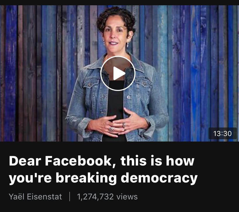 في محاضرة تحت عنوان "هكذا ينتهك الفيسبوك الديمقراطية" للناشطة الأمريكية يائيل ايزنيتسات والتي عملت لفترة قصيرة في فيسبوك، أشارت إلى خطورة ما تقوم به مواقع التواصل الاجتماعي من تعزيز للكراهية والاستقطاب الحاد وعدم تقبل الرأي الآخر، وذلك من خلال الخوارزميات التي يطبقونها على مشتركيهم.