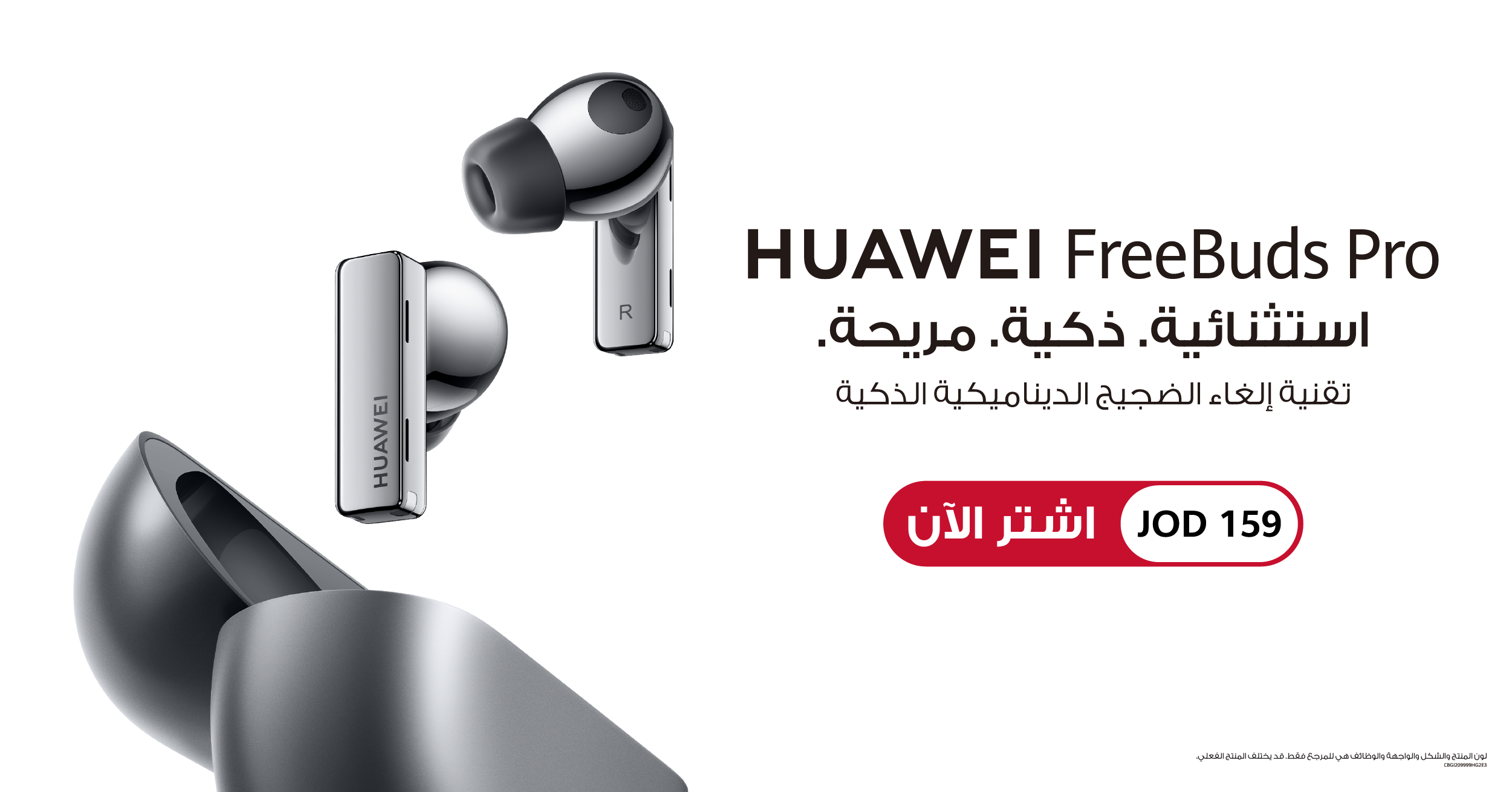 لا تتردد باقتناء سماعات Huawei FreeBuds Pro المتوفرة حاليًا في السوق الأردني بسعر 159 دينارًا، عبر متجر هواوي الإلكتروني من خلال الرابط: https://huaweieshop.jo/accessories/huawei-freebuds-pro، أو عبر زيارة أيّ من المتاجر التي تعرض منتجات هواوي، واستمتع بتجربة صوتية استثنائية.