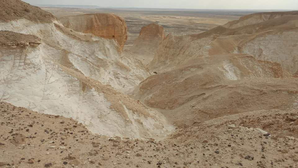 وصلنا الحدود السعودية قرب العمري مع ساعات الفجر الاولى، لحظة البداية بوقت تناغم الشمس مع الأرض وهو الأجمل في أوقات البادية، كان جل اهتمامنا لهذا المسار بما سوف نشاهده من منحوتات تحاور في صنعها الريح والماء عام بعد عام، بأرض استمدت اسمها من بياض ضاحك كالثغر الباسم وسط سمار الصحراء، وبيننا وبين أراضي اشقائنا بضع مئات من الأمتار وخط اعتباري من الحدود.