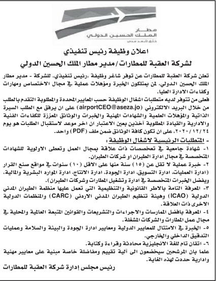 مطلوب رئيس تنفيذي لشركة العقبة للمطارات