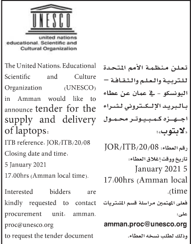 مطلوب شراء اجهزة كمبيوتر محمول لمنظمة الامم المتحدة للتربية والعلم والثقافة