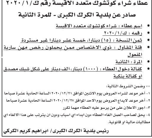 مطلوب شراء كوتشوك لبلدية الكرك