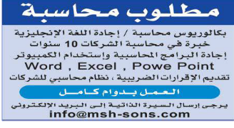 مطلوب محاسبة