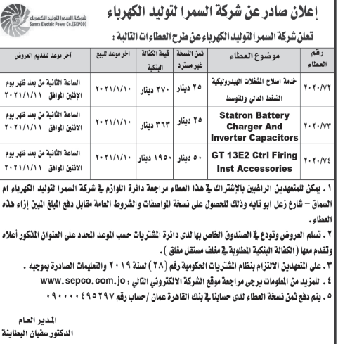 عطاءات صادرة عن شركة السمرا لتوليد الكهرباء