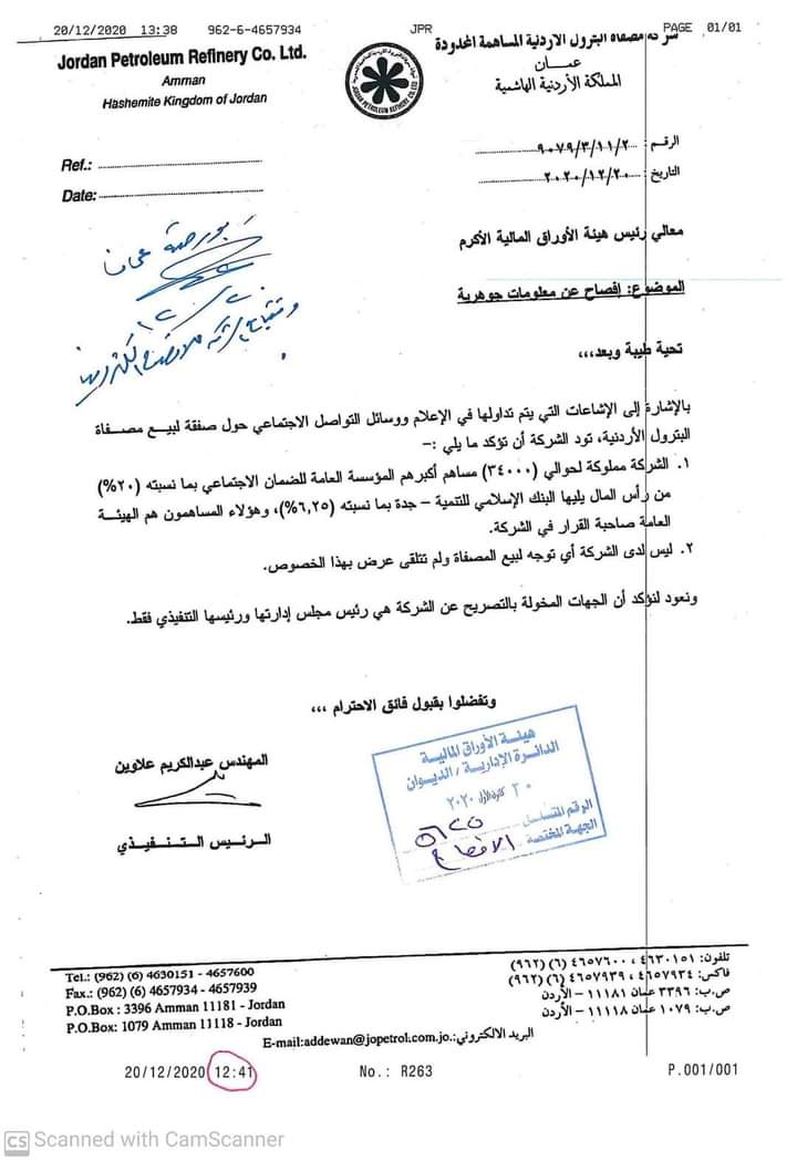 مصفاة البترول: الشركة مملوكة لـ 34 ألف مساهم ولا نية لبيعها20-12-2020 03:47 PM
