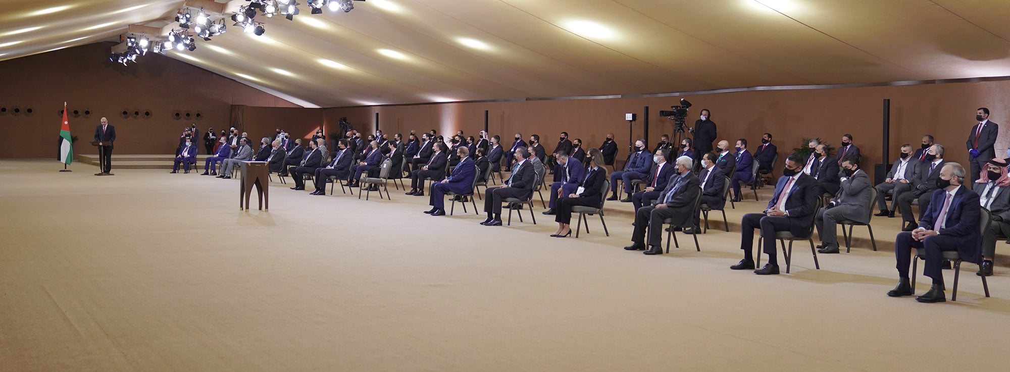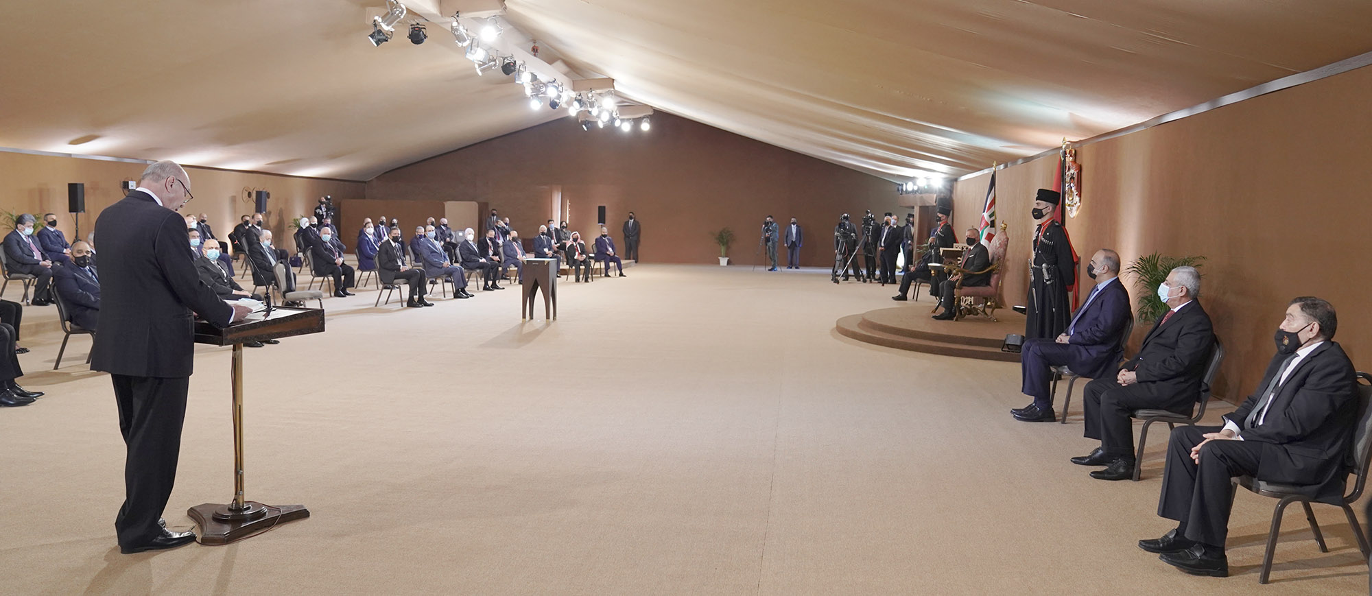 نقف بين يدي جلالتكم وقد اكتمل الاستحقاق الدستوري بخطبتكم السامية بعد أن اختار شعبكم الأردني الوفي الكريم ممثليه إلى المجلس النيابي التاسع عشر معبرا عن وعيه بمكانته في دستور بلده، الذي جعل منه مصدرا للسلطات محتفيا بمئوية الوطن الأولى مستشرفا مستقبله بعزم وثبات وولاء.