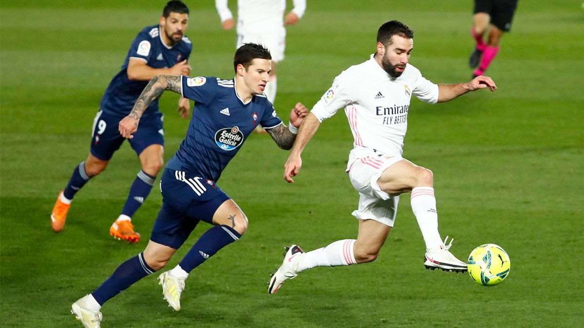 واستبدل كارفاخال في الدقيقة 83 أمام سيلتا فيغو بعد حصوله على الإنذار، الذي جاء بسبب اعتراضه المتكرر على الحكم، رغم تقدم ريال مدريد في النتيجة 2-0 ولم يكن بحاجة إلى ذلك ودون سبب واضح، وهو ما قد يراه اتحاد الكرة تحايلا لإجبار الحكم على معاقبته وعدم لعب المباراة التالية لإخلاء سجله من البطاقات المتراكمة.