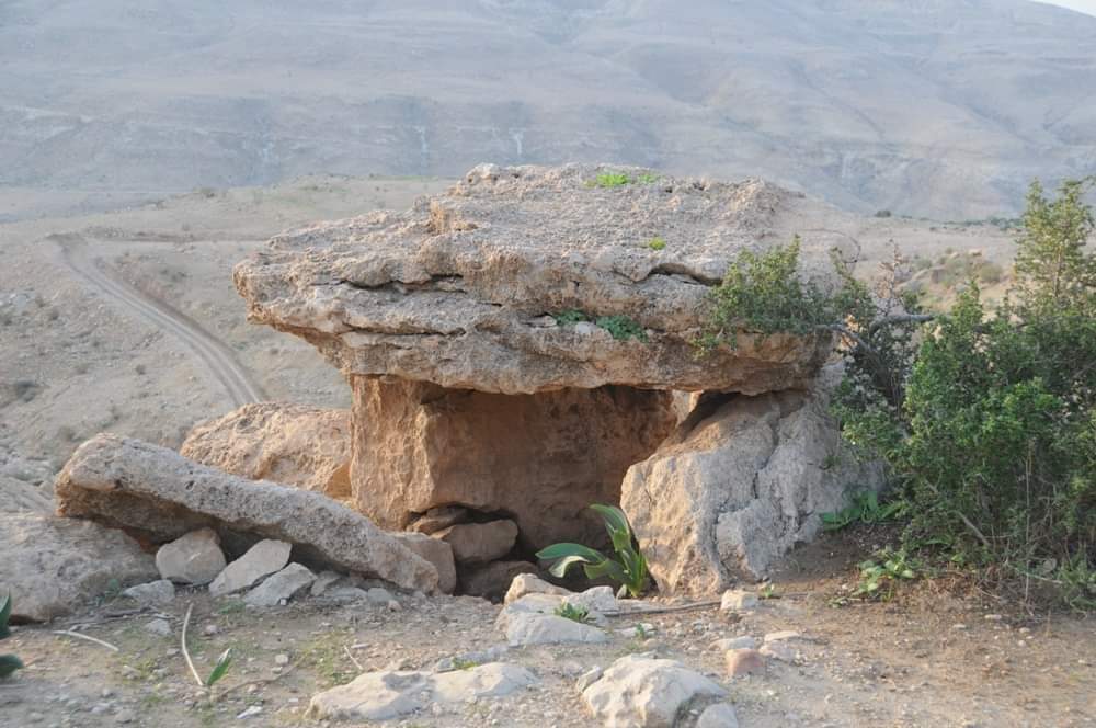 كانت أولى المحطات عند قبريّ دولمن 3000 ق.م الوحيدين في طريقنا، والمحير فيهما هو أسلوب بنائهم وصمودهم منذ ذلك الزمان، عملنا على حمايتهم والتوعية بأهميتهم بمابدرتنا التي انطلقت منذ عام 2011 وليدخلها درب الأردن شعار لمرحلة الوادي، وختم له ضمن خارطته وبالأفق المقابل بدأت تظهر جبال ذيبان الشامخة وبلدتها التي وجد فيها مسلة الملك ميشع الشهيرة ومجاري الأمطار والشعاب التي تصب بالوادي، وبعد هذه الوقفة التأملية سلكنا المدكة أو "الخطيطة" كما تسمى بالعامية أي الطريق الترابي الذي يسير عليها الرعيان في جولاتهم اليومية، مروراً بالعديد من الكهوف والمغارات، التي يستخدموها لإيواء أغنامهم ليلاً؛ خشيةً عليها من افتراس الوحوش حتى نصل إلى قمة الجبل بعد اجتياز أطلال مقلعٍ حجريّ، والذي تم ايقافه لمخالفته شروط البيئة، وهناك كانت استراحتنا مع كوب حليب ماعز معطّر بالزعتر والذي أصرّ أحد أبناء أهل المنطقة دعوتنا لتناوله دون سابق معرفة، وهو كرمٌ مشهود ومعروف في أرجاء بلادنا، ودعوتنا لمسارٍ لبلدتهم "القريات" التاريخية واستكشاف بيوتها المعمرة ومساكنها التاريخية ومافيها من نظام حصاد مائي وآبار رومانية صخرية ما زالت عاملة منذ مئات السنين ولنا لها عودة.