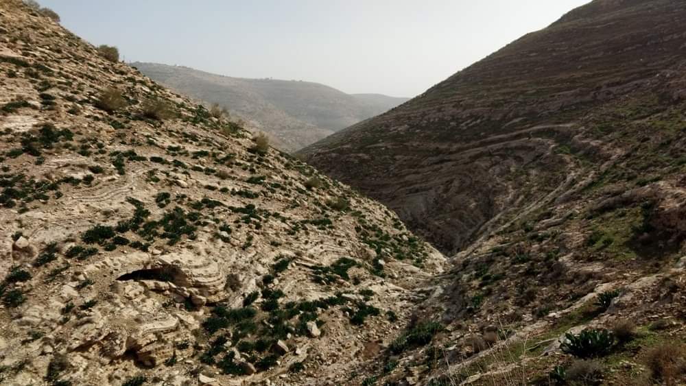 استمرينا بمسيرنا على شفا جبال الصدع العظيم ومواقع تعد الأفضل للتخيم والتأمل لعشاق الطبيعة والزهد، بصمت لا تسمع فيه سوى عزيف الريح والأفق البعيد من جبال بيت لحم والخليل، مروراً بأطراف قرى قضاء العريض، جرون والجديدة وصبرة والزينة والدير، سالكين شعاب الوادي الذي أسكن الرعاة ماشيتهم فيه، بدعوات وترحاب في كل مرة نمر بجانب أحدهم لفنجان قهوة عارضين مساعدتهم واستضافتهم، لتبدأ مشارف "جبل المشنقة" قلعة مكاور مقصدنا النهائي بالظهور بعد اجتيازنا الوادي للغرب منها، بمشهد مهيب مغاير لما يراه القادم عبر الطريق المعبد خصوصا أننا في قاع الوادي وهو أكثر انخفاض بكثير من مركز الزوار.