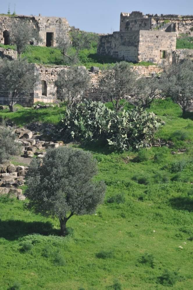 ومن نفس التلة ترى موقع معركة اليرموك 636 م التي انتصر بها القائد المسلم خالد بن الوليد بحنكته على جيش الروم الجرار خلال فتوحاته لبلاد الشام، ومنه توجهنا صعوداً نحو البلدة مروراً بمساحات شاسعة من من بيادر القمح وبساتين الزيتون ضمن أرضٍ عالية الخصوبة تم زراعتها بعد تجريف مافوقها من صخور بازلت ضمن مشاريع الاستصلاح الأرضي المرتفعة، وقد كانت إحدى العوائق طين الأرض المحروثة الذي يعلق بأحذيتنا حيث راعينا أن تكون مطرية لما فوق الكاحل ذات فرزات نعل عريضة مع ارتداء واقيات الساقين حتى لا يتسلل شيء ما بين الحذاء والبنطال، أو يتسبب بانزلاق بما يلتصف بها من طين عند العودة للمسير على الصخور، وأثناء مرورنا ببعض الأطلال الأثرية وجدناه بينها من سلاحف وبعض القنافذ كما لمحنا سناجب وقطفنا شيء من أوراق نبات اللوف الشهي، لننهي مسار بلغ خمسة وعشرون كيلومتر بمستوى جبليّ صعب.