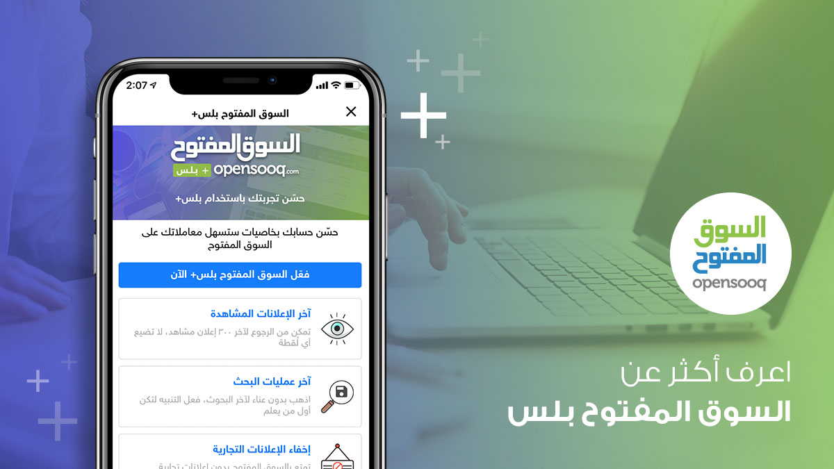 خدمة السوق المفتوح بلس OpenSooq Plus+؛ هي واحدة من أفضل الخدمات المدفوعة المقدمة من قبل الموقع، حيث يدور مبدأ عملها حول التحسين من حسابات المستخدمين المسجلة عليه؛ بفضل ما تشمل عليه من مجموعة من الخصائص المميزة؛ والتي من شأنها أن تمكنهم من إجراء معاملاتهم المختلفة على السوق بشكل أسهل، حيث يحصل المستخدم فور الاشتراك بها على إمكانية التخلص من الإعلانات التجارية التي من الممكن أن تكون مزعجة بالنسبة للبعض أحياناً، كونها تعمل على تشتيت انتباههم، كما تتيح إمكانية الاطلاع على آخر الإعلانات التي تمت مشاهدتها من قبل المستخدم؛ بحيث يمكن العودة إلى آخر 300 إعلان سبق له تصفحها، مما يعني ضمان عدم تضييع أي لقطة، والاستفادة من الفرص المتاحة في الوقت المناسب.
