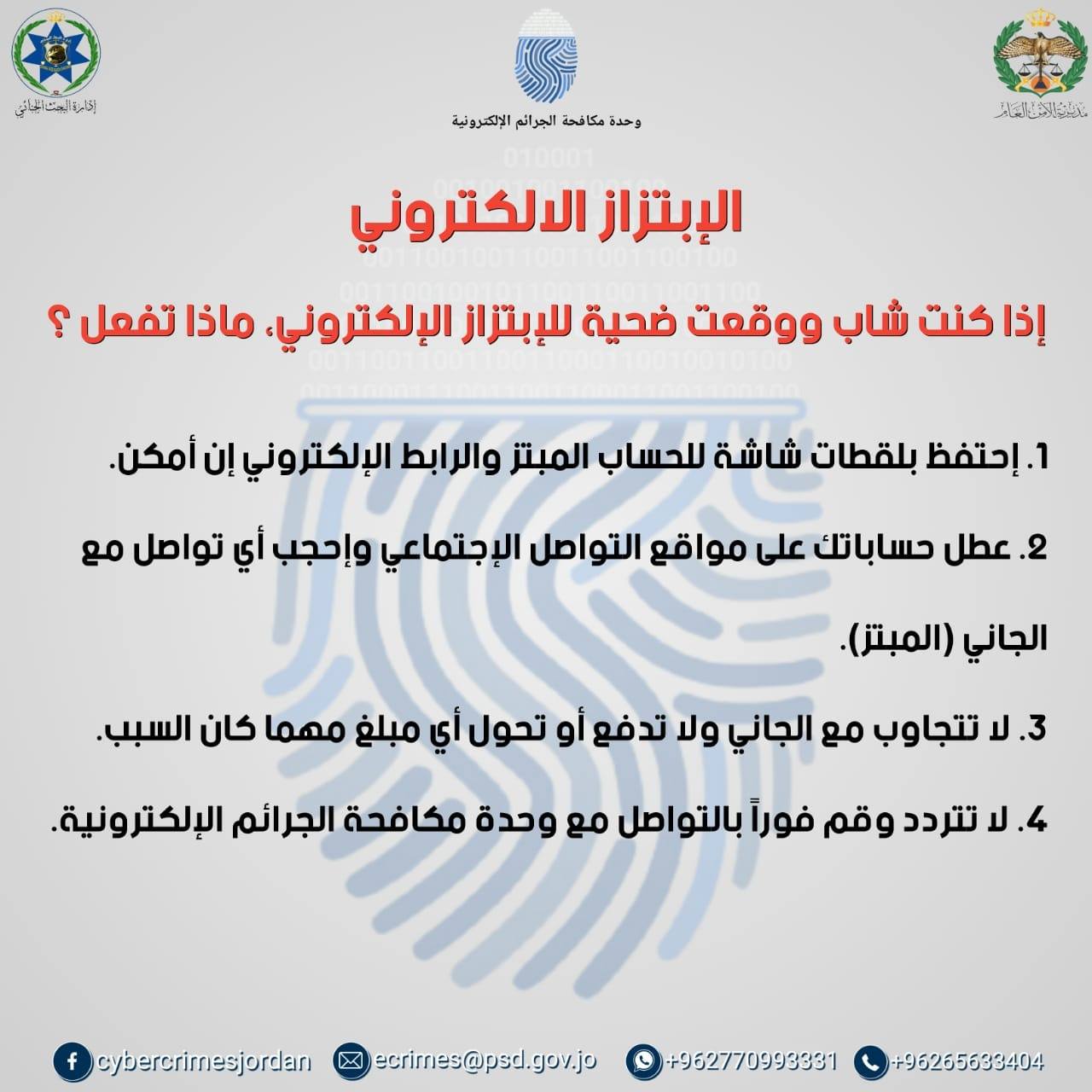 نصائح من "الجرائم الالكترونية" لضحايا الابتزاز29-01-2021 01:09 PM