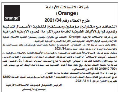 عطاء صادر عن شركة الاتصالات الاردنية(orange)