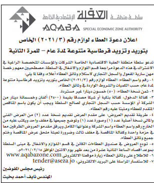 مطلوب توريد قرطاسية لسلطة منطقة العقبة