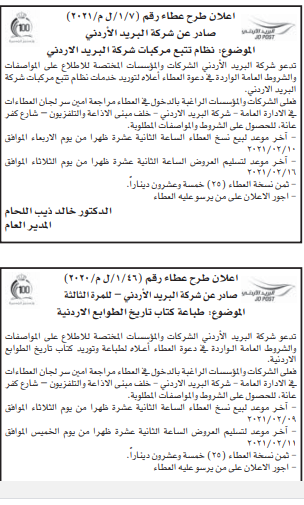 عطاءات صادرة عن شركة البريد الاردني
