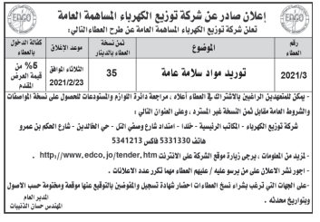 شركة توزيع الكهرباء ترغب بشراء ادوات سلامة عامة