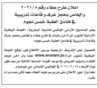 مطلوب حجز غرف وقاعات تدريبية في فنادق العقبة لصندوق الاردني الهاشمي