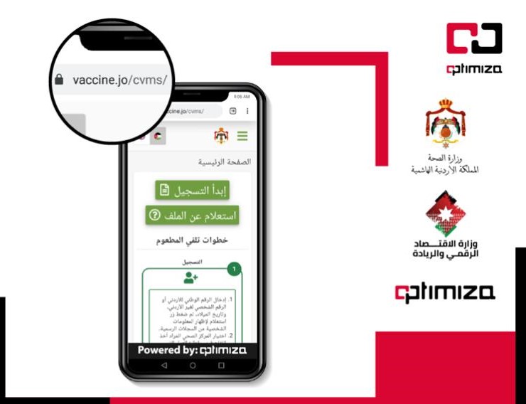 وأعرب المدير التنفيذي لشركة أوبتمايزا، ماجد سفري، عن فخره كون أوبتيمايزا شاركت في الحملة الوطنية لمكافحة وباء كورونا من خلال تطوير نظام منصة التطعيم، وغيره من مشاريع التحول الرقمي التي تهدف الى التقليل من الآثار السلبية لجائحة كورونا على المواطنين مثل برنامج تكافل لصندوق المعونة الوطنية، ونظام ميزان لوزارة العدل وغيرها من المشاريع.