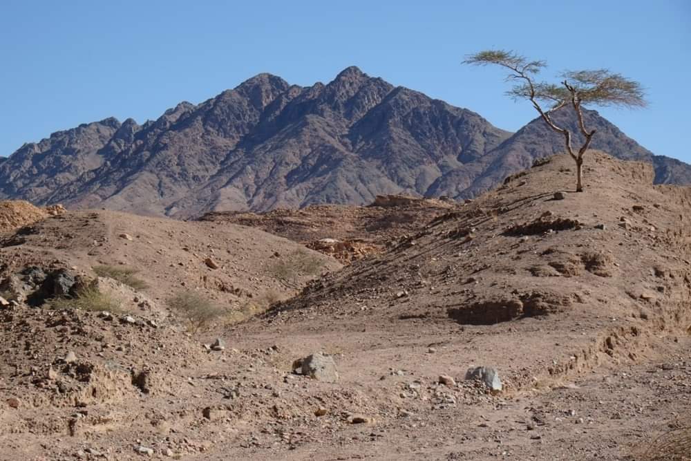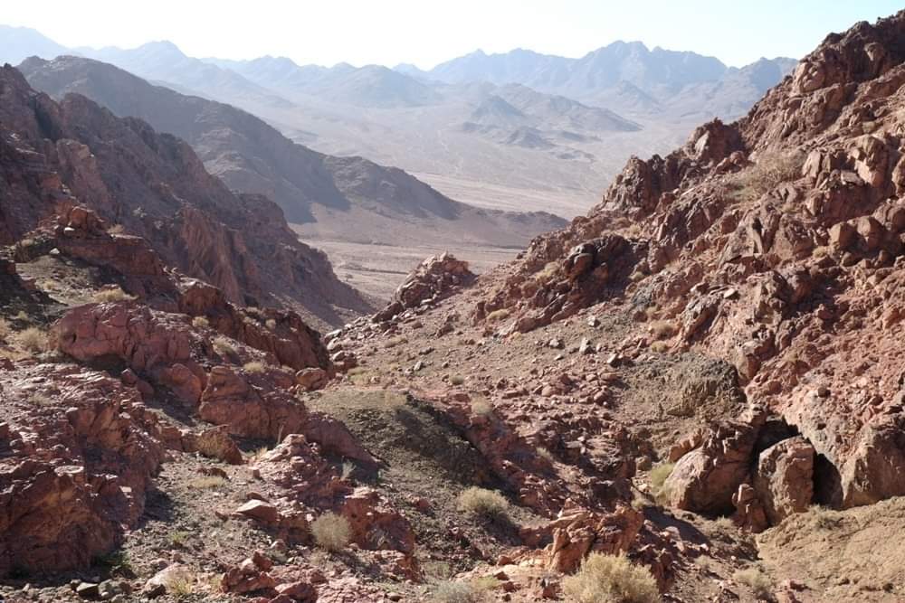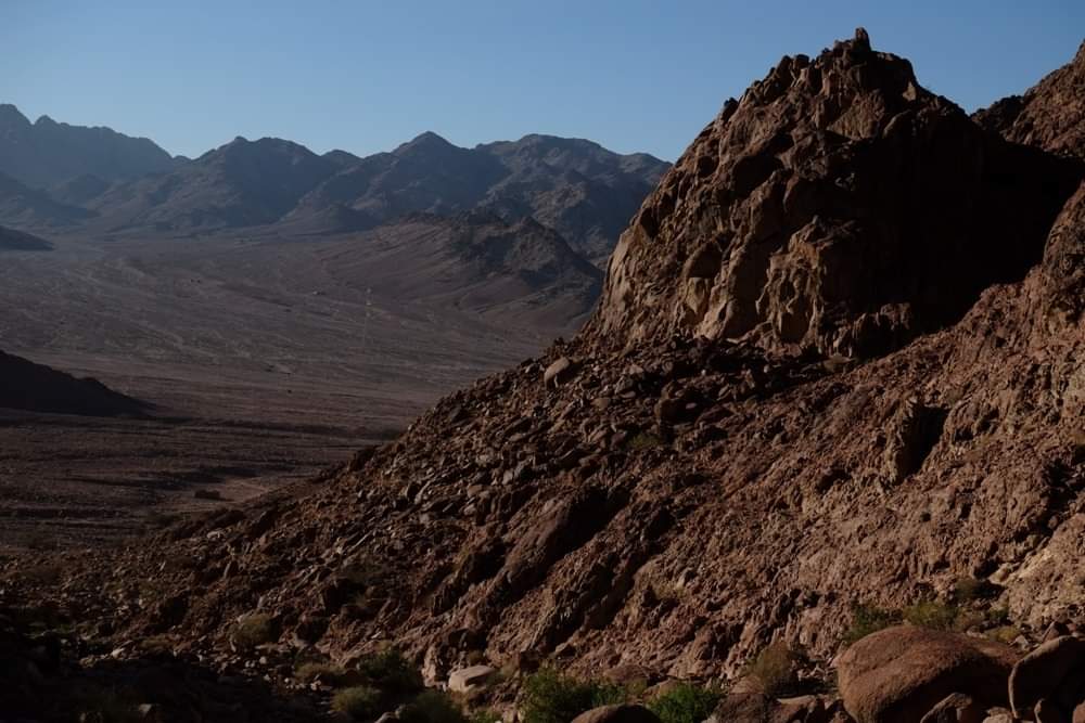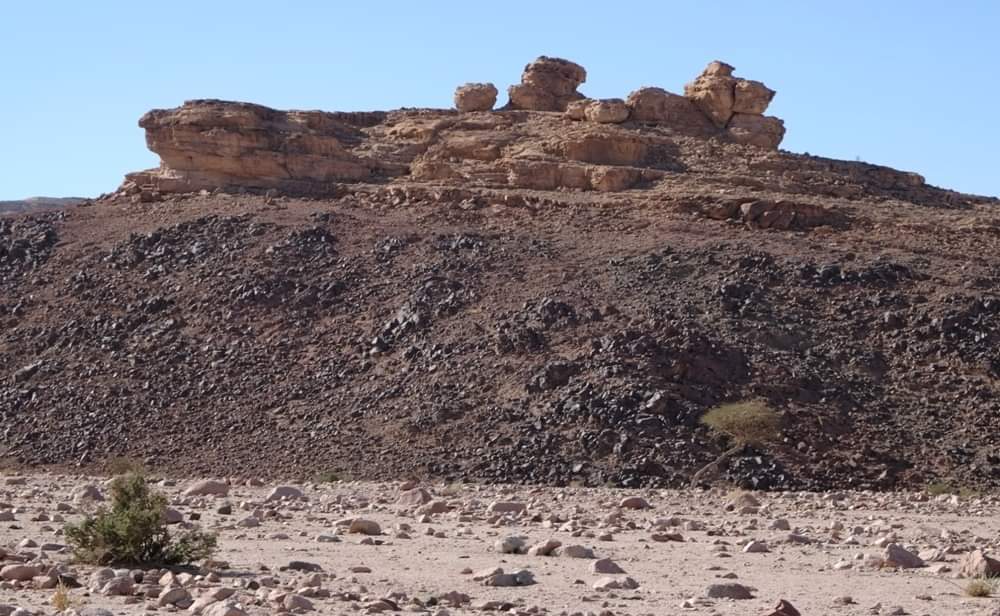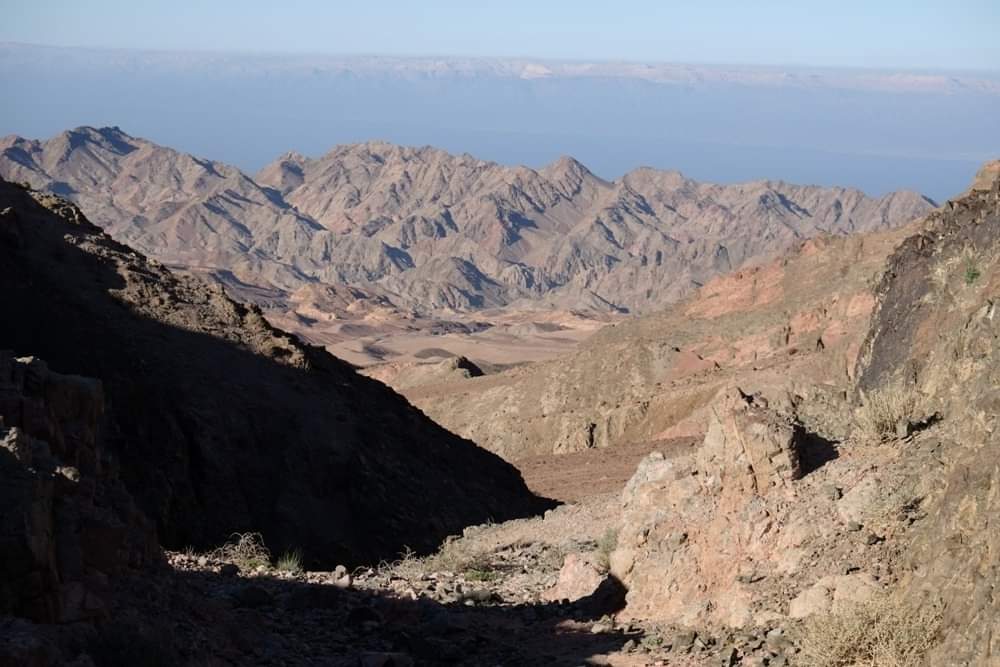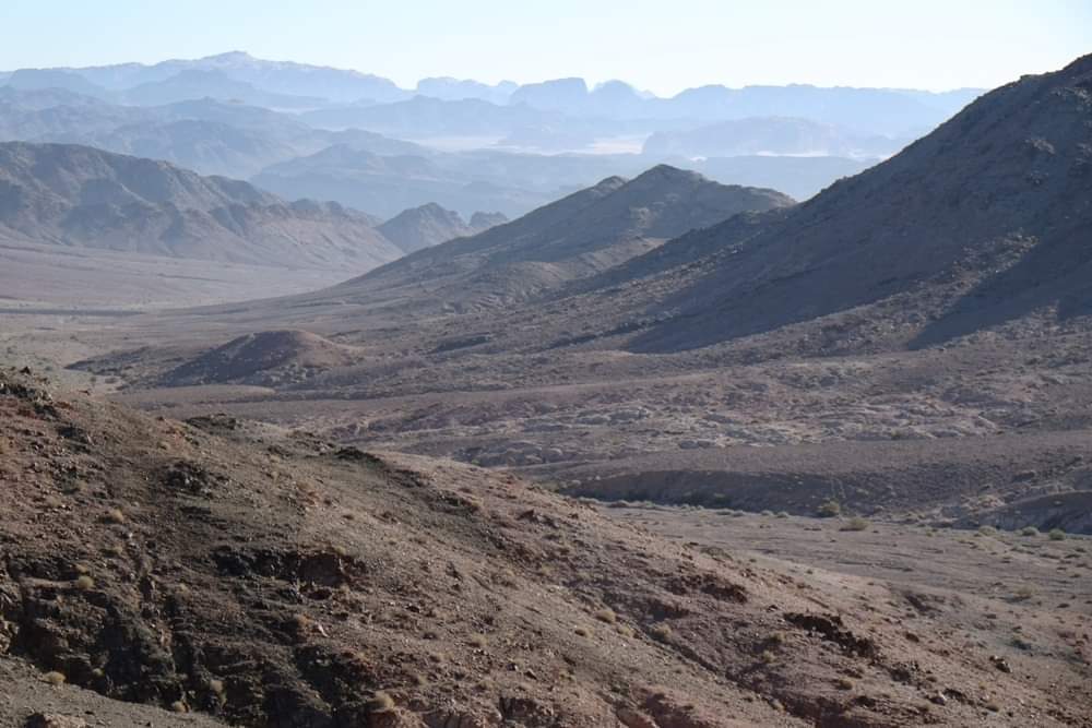 وما بين ساعة السحر والفجر نهضنا حسب الخطة بعد ليلة لامست درجات حرارتها الصفر مئوي من ليالي سعد الذابح الباردة، اشعلنا النار التي لم ينطفىء جمرها واحتسينا الشاي ليعيد الدفء إلينا، حاملين معنا إفطارنا ليكون على القمة الأولى من سلسلة جبال العقبة بعد ثماني كيلومترات من طريق الصعود والمرور بالسد الركامي، وما أن وصلناها حتى كان مشهد قل نظيره بجبال صخورها من كل لون ونوع، حيث لا تقل جمالاً عن جبال محمية البيرو الجرداء ذات الشهرة العالمية بألوانها، فنحن بين صخور قد تشكلت قبل ثمانمائة مليون عام من العصر الكامبري وما قبله، وفي الأفق البحر وجبال سيناء، مشهد لا يشبه أي مشهد، حيث لم تصله المدنية أو تلوث البشرية، فنحن في جنة عشاق الجيولوجيا، متحف الأرض الطبيعي، مقصد الباحثين والدارسين، وأثق أنه لو روّج بالشكل الصحيح لأصبح مقصد مهم في عالم السياحة البيئية ومكوناتها ومقصد الدارسين من منظمات وجمعيات عالمية ومن هم طالبين الخلوة والهدوء، ومصدر إلهام لنوابغ الفن من نحت فضالتهم هنا من صخور البازلت الفريدة، وكل الخامات والألوان، بل حتى هيكل الجمل العظمي الميت على الطريق، لو أُتيح لفنان لعمل منه أيقونة كما فعل الفنان محمد الحواجري بالرسم على العظم كالمجموعة التي عرضت بمعهد العالمي العربي في باريس، وهنا تذكرنا طبيعة القمة الجرداء، جبال الهمالايا، والصحاري المرتفعة، دون نباتات وحجارة غير ثابتة تتدحرج تحت قدميك مع كل خطوة.