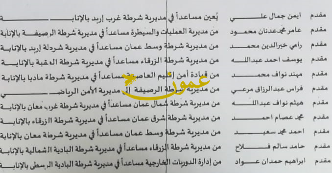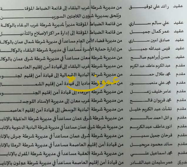 عمون - ينال المعاني - قرر مدير الأمن العام اللواء الركن حسين الحواتمة إجراء تنقلات بين كبار الضباط.
