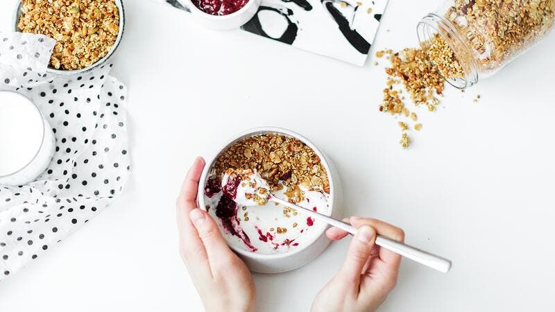 يحتوي منتج الألبان اللذيذ هذا على جميع العناصر الغذائية الضرورية اللازمة للحفاظ على صحة العظام. من الكالسيوم والبوتاسيوم إلى الفوسفور وبعض كمية فيتامين (د) ، الزبادي مليء بجميع العناصر الغذائية الضرورية للحفاظ على صحة العظام. يجب على جميع الأشخاص الذين يعانون من انخفاض كثافة العظام أو المعرضين لخطر الإصابة بكسور العظام تضمين الزبادي في نظامهم الغذائي.