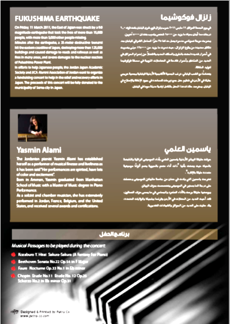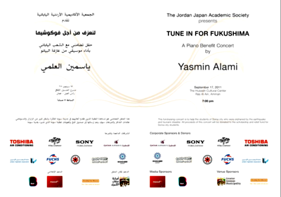 • قامت العديد من دول العالم بتقديم الدعم والمساعدة الى الشعب الياباني بهذه المحنة وضربوا مثلا على التعاون السلمي والتضامن مع الشعوب والاردن بتوجيهات ملكية سامية قدم مساعدات عينية من خيم ووسائل عيش وارسال فريق طبي من المدينة الطبية الى المنطقة المتضررة وعملت الجمعية الاكاديمية الاردنية اليابانية باقامة حفل خيري برعاية السفير الياباني كوسوجو في ذلك الوقت وريع الحفل كاملا تم التبرع به لمدينة سوما اكثر المناطق تضررا ولمدرسة من الاطفال الايتام الذين فقدوا ابائهم وامهاتهم في هذه الكارثة وقد عمل فريق رائع قاده السيد كريم زاهي عرفات والجالية اليابانية في الاردن بالتواصل مع الجهات الداعمة وتسخير كافة الوسائل اللازمة من الانترنت والكفاءات لبث الحفل على الهواء مباشرة بالمشاركة مع عمدة مدينة سوما -مرفق صور للفعالية والجهات الداعمة- الذين نشكرهم على هذا العمل الخيري والجهود التي بذلوها .