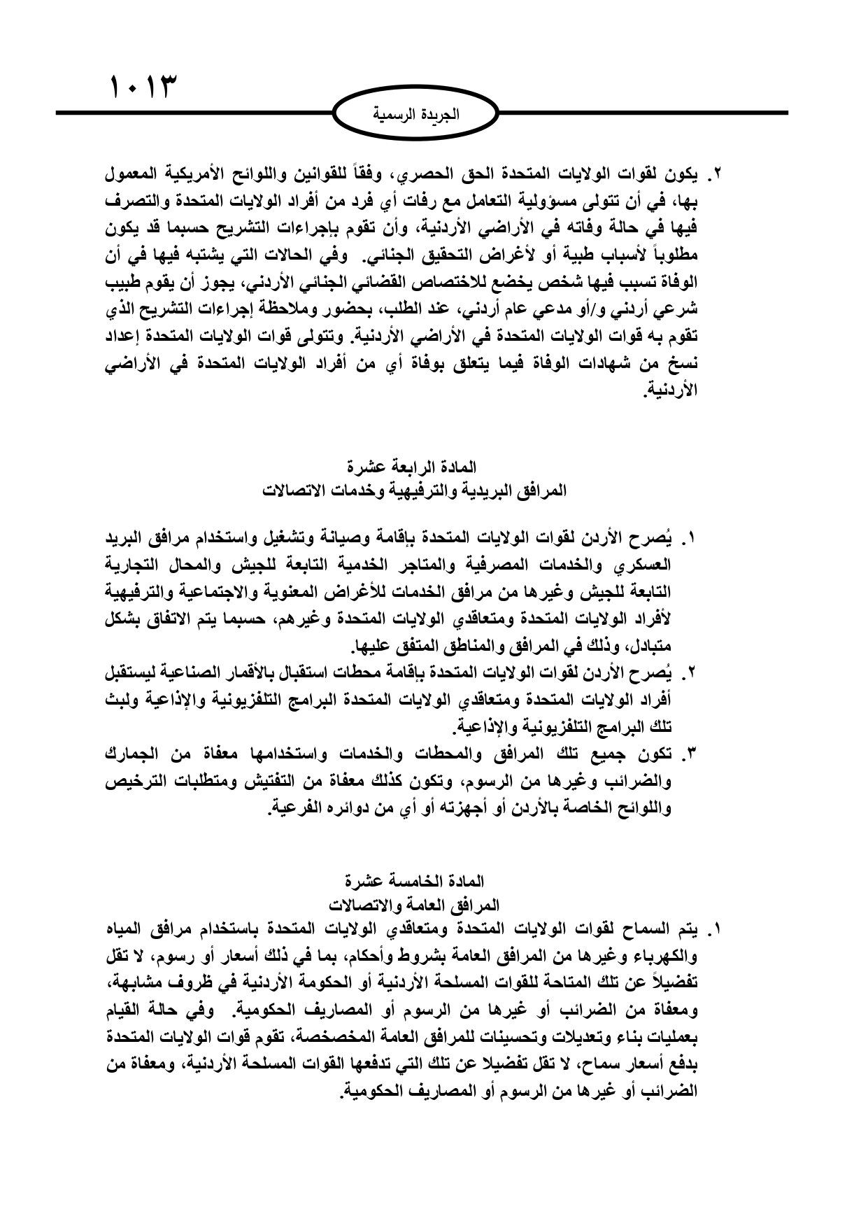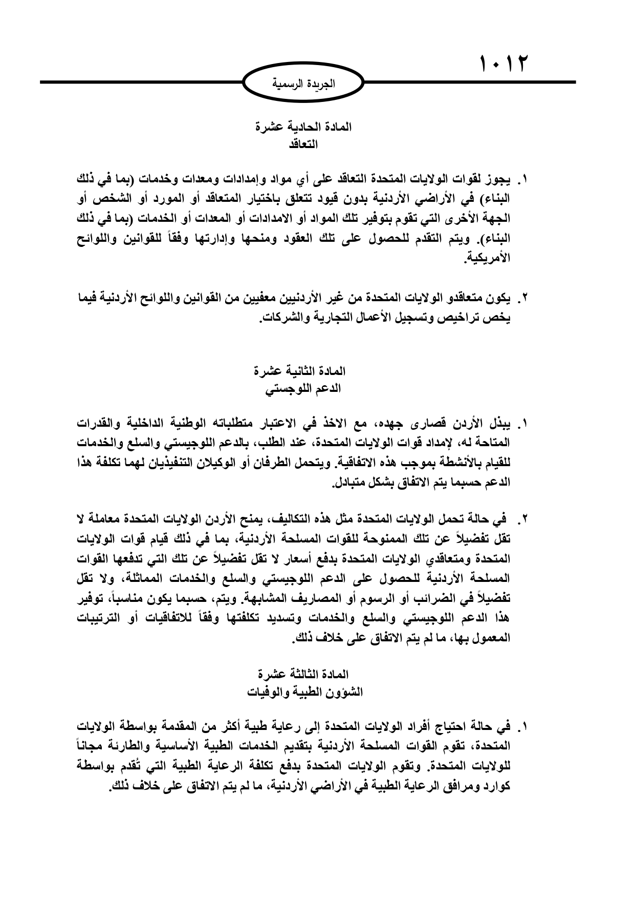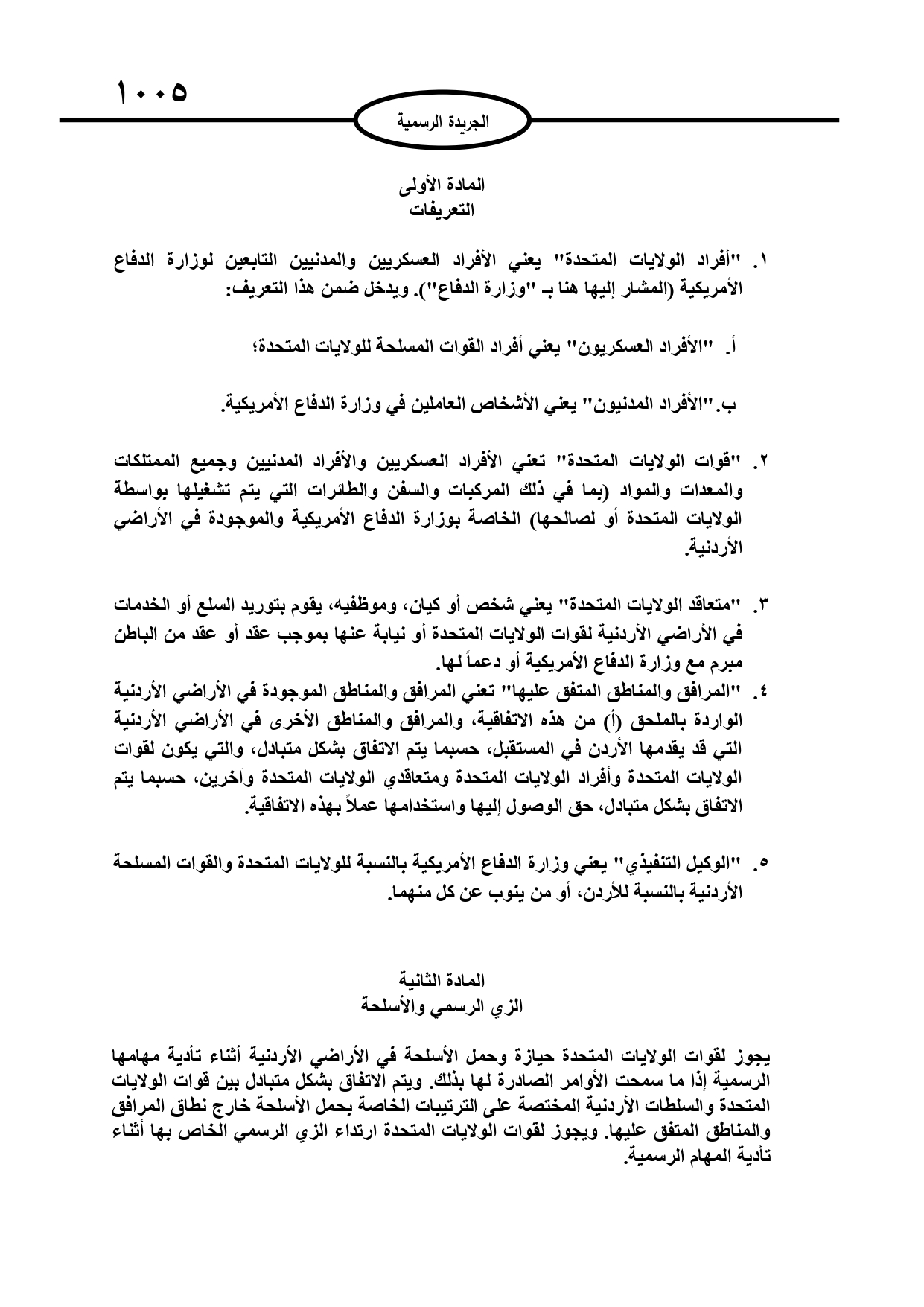 عمون - صدر في عدد الجريدة الرسمية الثلاثاء، اتفاقية تعاون دفاعي بين حكومة المملكة الأردنية الهاشمية وحكومة الولايات المتحدة الأمريكية. |