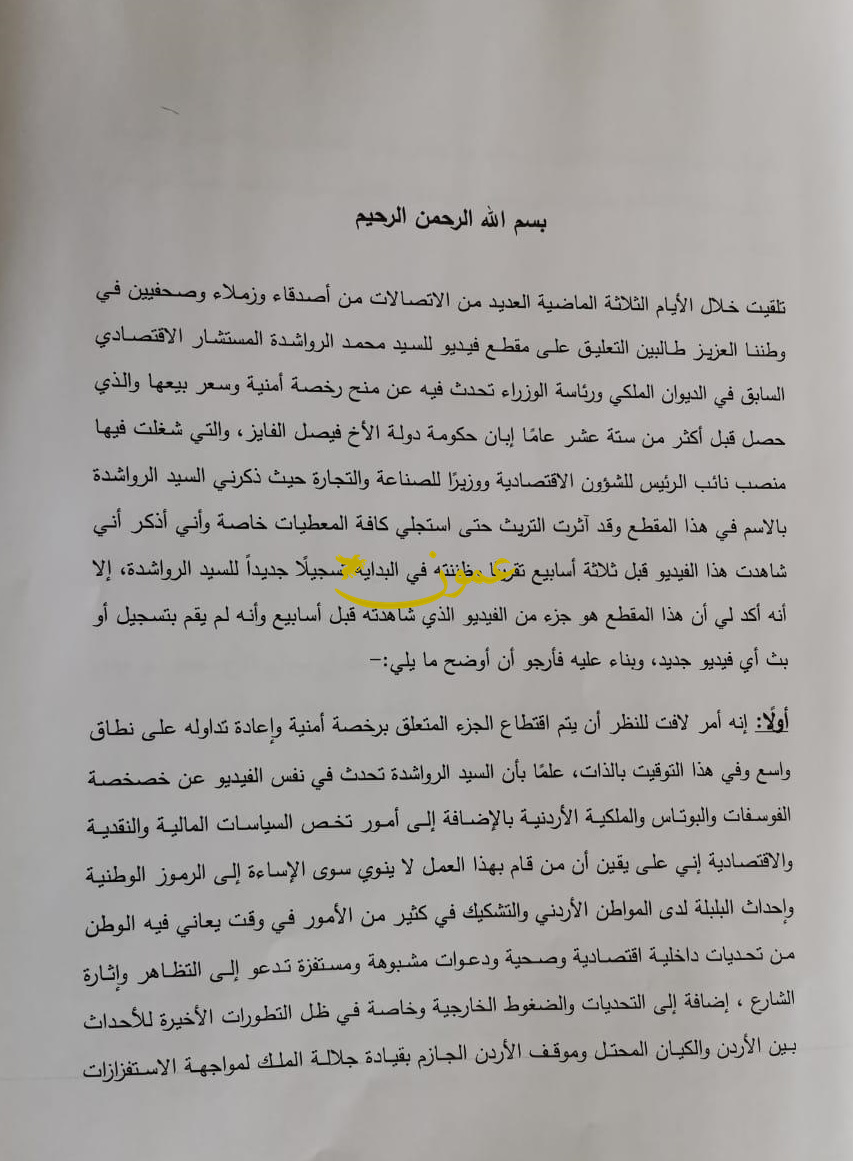 الحلايقة يرد على الرواشدة حول رخصة شركة امنية