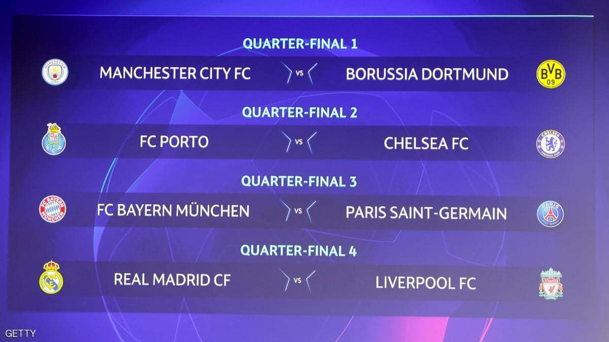 عمون - يترقب عشاق بطولة دوري أبطال أوروبا حول العالم، مباريات دور ربع نهائي نسخة 2021/2020، بعدما أسفرت القرعة التي أجراها الاتحاد الأوروبي لكرة القدم "يويفا" عن مباريات قوية خلال شهر أبريل القادم.