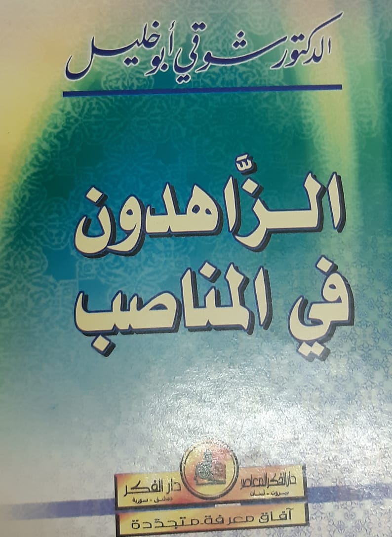 "الزَّاهدون في المناصب"، كتيّب من القطع الصّغير، صدر سنة 2006م، طوَّف فيه مؤلّفه المؤرّخ الفلسطينيّ السّوريّ شوقي أبو خليل (1941-2010م)، على (27) سبعة وعشرين نموذجًا من نماذج الزُّهد في الولاية والإمارة، الذين تَربَّعوا بقلوبهم فوق السَّحاب، بعيدًا عن طغيان الحياة وسَفْسافها- بدءًا من الصّحابيّ ثابت بن أقرم (ت12هـ) في معركة مؤتة؛ إذْ تنازل لابن الوليد بعد استشهاد القادة الثلاثة، ومرورًا بأبي عبيدة عامر بن الجرّاح (ت18هـ) في "ذات السّلاسل"، وتنازله لعمرو بن العاص (ت43هـ)، وعتبة بن غزوان (ت17هـ)؛ فَتَحَ الأُبُلَّة، واختطَّ مكانها مدينة البصرة، واستعفى ابن الخطّاب من ولايتها.