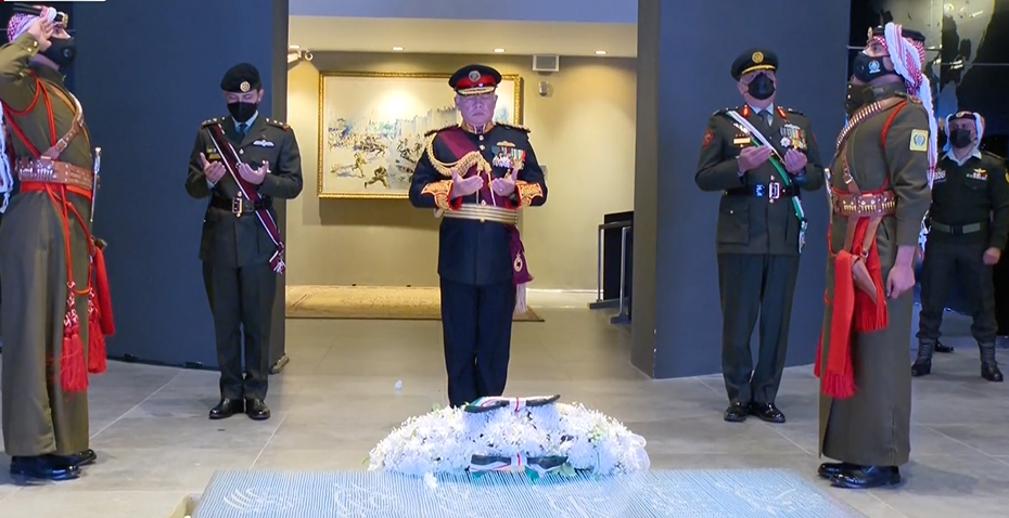ووضع جلالة القائد الأعلى إكليلاً من الزهور على ضريح الشهيد داخل الصرح، وقرأ والحضور الفاتحة على أرواح الشهداء.