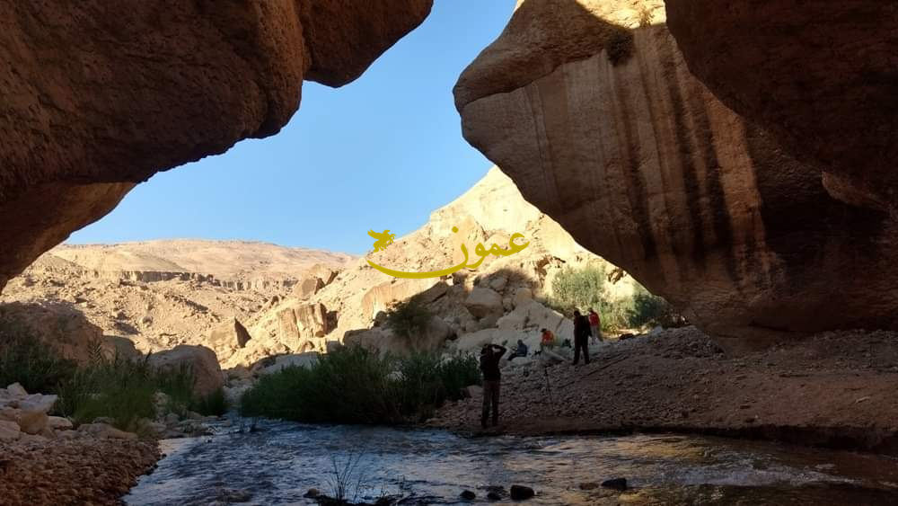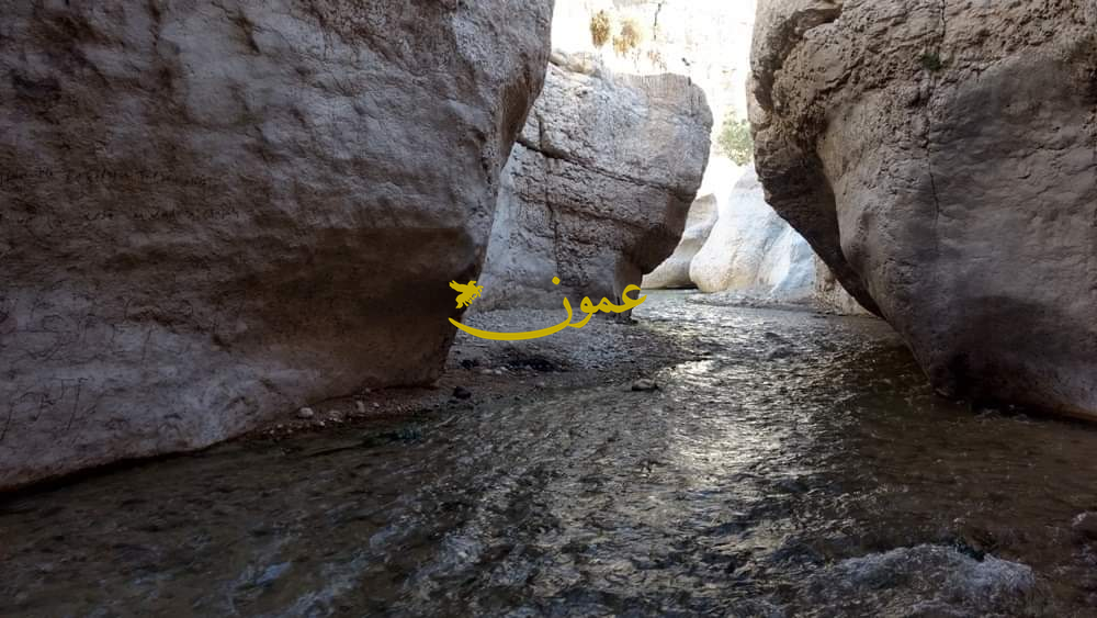 وعند الشلال وعلى صخوره الملساء التي تَدبُ فيها المياه المعدنية الغنية بالمعادن والأملاح من كلوريد وكبريتيد الهيدروجين وغاز الراديوم المشع واليود كانت استراحتنا الأولى بعد هذا الجزء الأصعب من الرحلة بتقسيم الوادي لمراحلٍ ثلاث (العلوي، الأوسط، والسفلي) والمتعارف عليها لدى عشاق المسير والترحال، لنبدل أحذيتنا لأحذيةٍ رملية صخرية ذات النعل الخشن وأفضلها ذات العلامة الصفراء "فيبرام" لشدة تماسكها وثباتها باحذية مائية دون جوارب كون المرحلة القادمة سوف تكون بقلب الوادي ضمن مجرى المياه.